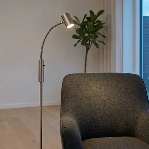 Noor II gulvlampe fra Nova Life er en stilfull og dimbar lampe, perfekt som leselys. Den justerbare armen og dimmeren på lampen gir fleksibel belysning, mens den eksklusive messingfinishen tilfører et elegant preg til rommet.