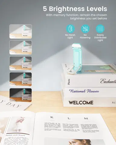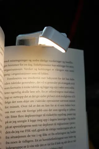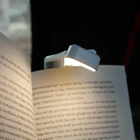Mini Clip fra OppTi er et praktisk leselys med klips og fem justerbare lysstyrkenivåer. Du kan enkelt tilpasse belysningen etter dine behov, og lampen lagrer din foretrukne innstilling. Den er USB-oppladbar og kompatibel med alle USB-porter.