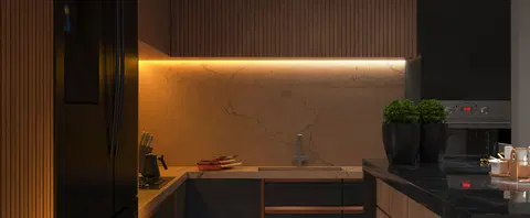 Den 5 meter lange stripen med integrerte LED-lys gir et jevnt og behagelig lys som kan brukes til å fremheve arkitektoniske detaljer, skape kontraster og dybde i rommet.