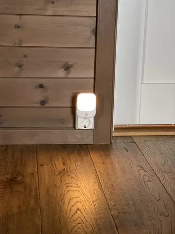 Nattlyset er utstyrt med en bevegelsessensor og en innebygd lyssensor som aktiverer lyset automatisk når det registrerer bevegelse i mørke omgivelser. Med modusknappen kan du enkelt velge mellom AUTO, AV eller PÅ-modus for å tilpasse lysinnstillingene etter ditt ønske. For ytterligere tilpasning har nattlyset en justerbar lysstyrkefunksjon som lar deg velge mellom fem ulike nivåer av lysintensitet: 100%, 75%, 50%, 15%, og 5%.