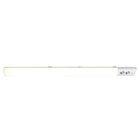 Den 100 cm lange armaturen monteres enkelt under overskap eller hyller, og gir fleksibel belysning over kjøkkenbenken. En stor fordel er den innebygde stikkontakten, som gjør det praktisk å koble til kjøkkenapparater. Armaturen har en slank og tidløs design som passer inn i de fleste kjøkkenmiljøer.