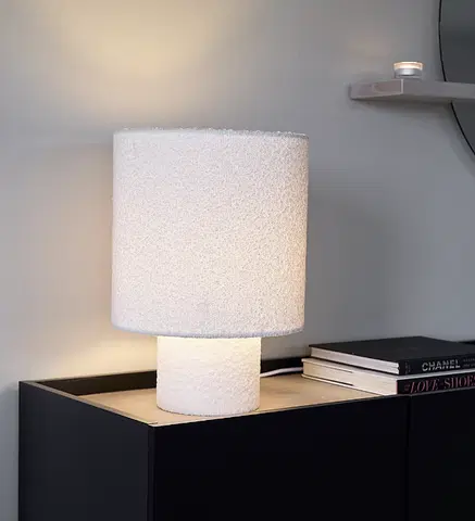 Skap en varm og innbydende atmosfære med Bouclè bordlampe i en delikat beige farge. Lampens unike, teksturerte overflate gir et sofistikert og moderne uttrykk, samtidig som den sprer et behagelig, diffust lys som passer perfekt i både stue, soverom eller gang.
