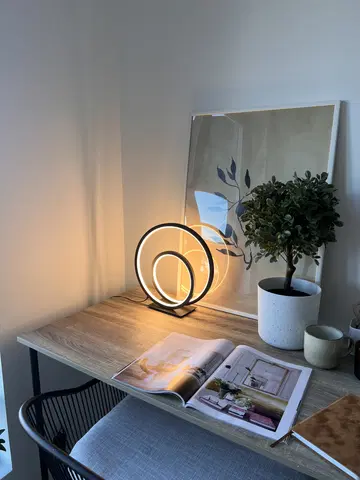 Circle Twin LED bordlampe er en stilren og funksjonell lampe som sprer et behagelig lys til stue, kontor eller soverom. Med sitt moderne design i sort aluminium og silikon, samt muligheten til å dimme lysstyrken, vil denne lampen passe godt inn i de fleste interiører. Lampen er energieffektiv og har 3 års garanti.
