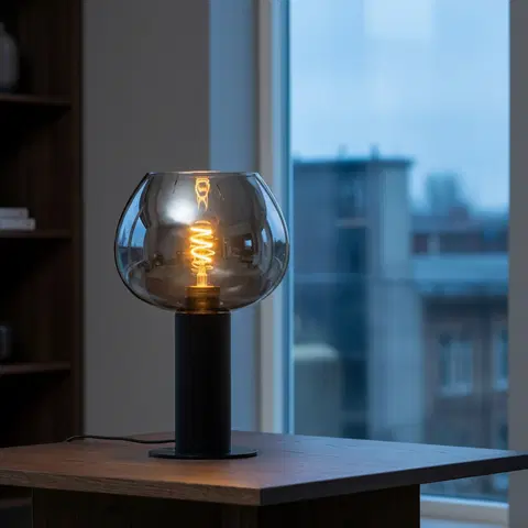 Kelly bordlampe fra Nova Life er en elegant lampe med munnblåst, røykfarget glasskjerm. Den formfullendte glasskjermen slipper lyset mykt gjennom og skaper en flott lyseffekt, spesielt når du bruker en dekorpære. Lampen har en enkel, men stilfull design i kombinasjonen av metall og glass.