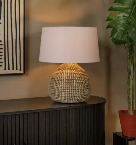 Er du glad i myke, naturlige materialer og har et hjerte for bærekraftige produkter? Da er Maduka bordlampe det perfekte valget for deg. Med sin runde lampeskjerm i lin og koniske lampefot laget av høykvalitets sjøgress, bringer Maduka varme og natur inn i hjemmet ditt.