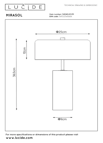 Den solide foten i ekte marmor gir lampen et eksklusivt preg og sørger for at den står stødig. Med en høyde på 36,5 cm og en diameter på 25 cm passer MIRASOL perfekt på stuebordet, kommoden eller nattbordet. Via den innebygde dimmeren på ledningen kan du enkelt justere lysstyrken etter stemningen du ønsker – fra dempet hygge til funksjonelt leselys.