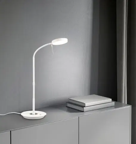 MONZA bordlampe fra Trio Lighting kombinerer moderne eleganse med avansert lysstyring. Med sitt slanke og tidløse design i matt hvit metall, passer lampen perfekt inn i både moderne og klassiske interiørstiler - enten på skrivebordet, nattbordet eller som dekorativ belysning i stuen.