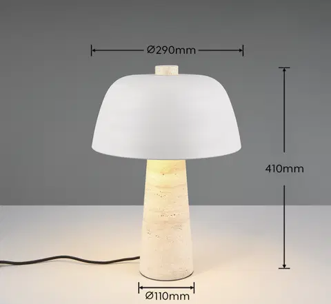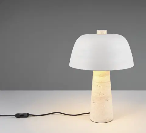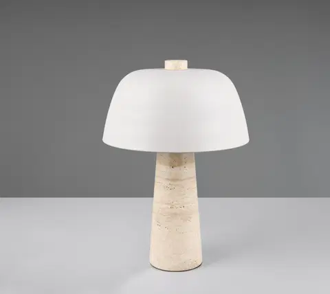 TIMBA bordlampe kombinerer elegant metall med en uvanlig base av travertinstein, og skaper en harmonisk blanding av natur og design. Den varme grå fargen gir lampen et mykt og sofistikert uttrykk, mens den naturlige steinbasen med sitt unike mønster gjør hver lampe helt særegen. Med sin soppformede design sprer TIMBA lyset behagelig nedover og tilfører subtile, stilfulle detaljer - perfekt på en skjenk eller et sidebord. Den integrerte ledningsbryteren gjør lampen enkel å betjene.