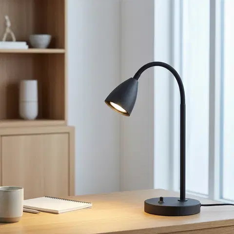 Lina er en elegant og funksjonell skrivebordslampe med et moderne uttrykk. Den matte sorte finishen gir et stilrent og tidløst design som passer perfekt til både hjemmekontor og arbeidsplass. Lampen har en fleksibel, buet arm som gjør det enkelt å justere lysretningen for optimal arbeidsbelysning.