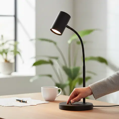 Noor II Flex fra Nova Life er en stilig bordlampe i matt sort metall som vil passe sømløst inn i de fleste interiører. Med sin justerbare arm og bøyelige skaft, kan du enkelt vinkle lampen for å få lyset nøyaktig dit du ønsker det. Takket være den integrerte dimmeren, kan du også tilpasse lysstyrken etter dine behov – enten du trenger klart leselys eller en mer dempet stemningsbelysning.
