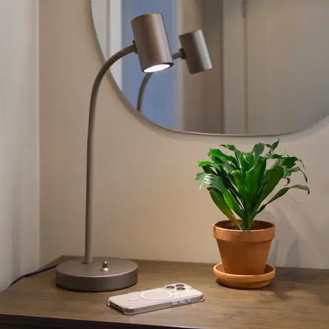 Noor fra Nova Life er en stilren bordlampe med fleksibelt design. Coffee fargen og enkle formene gjør at den passer inn i ulike interiørstiler. Lampen er utstyrt med en integrert dimmer som lar deg justere lysstyrken etter behov. På den måten kan du skape godt leselys eller en hyggelig stemningsbelysning.