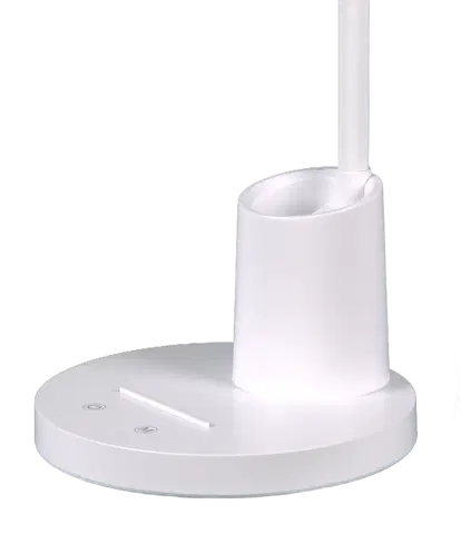 Elias skrivebordslampe fra Nova Life er en moderne og funksjonell lampe som kombinerer stilrent design med praktiske løsninger. Med sin slanke form i hvit ABS-plast og fleksibel arm, gir lampen effektiv og tilpassbar belysning til både hjemmekontor og studierom.