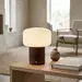 Liara bordlampe er en kompakt og elegant lampe som kombinerer moderne design med varme, naturlige toner. Den mørkebrune basen gir et eksklusivt preg, mens den myke, avrundede skjermen sørger for et behagelig og jevnt lys som skaper en lun atmosfære i rommet.