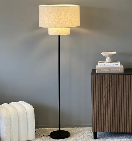 Lampen måler 130 cm i høyden og har en solid fot med diameter på 23 cm (skjerm 45 cm), som gir god stabilitet. Den er utstyrt med E27-sokkel og leveres uten skjerm, slik at du enkelt kan tilpasse uttrykket etter egen stil og behov. Den 2 meter lange sorte stoffledningen er utstyrt med praktisk fotbryter for enkel betjening.