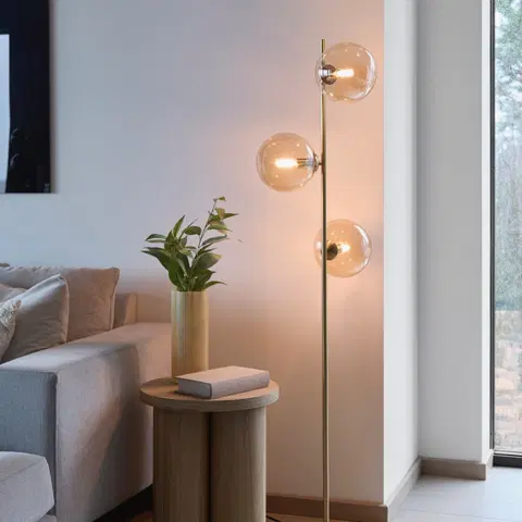 Cobe II gulvlampe 3lys 150cm messing/amber