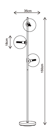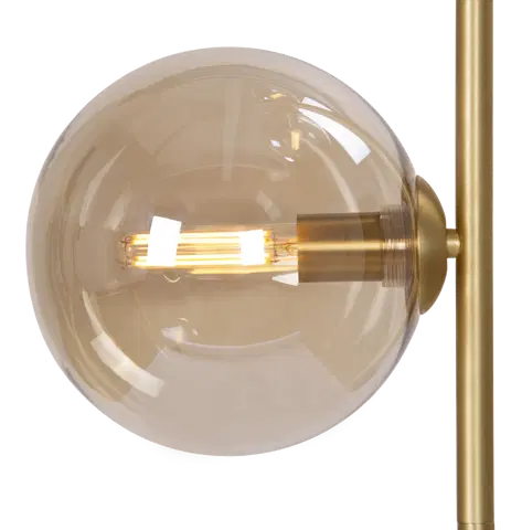 Med en høyde på 150 cm passer lampen perfekt ved siden av sofaen, i et hjørne eller som en del av en større interiøroppstilling. Kombinasjonen av metall og varmt tonet glass gir et eksklusivt preg som passer både moderne og klassiske hjem.