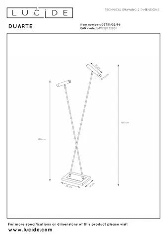 DUARTE fra Lucide er en stilren gulvlampe som kombinerer moderne design med praktisk funksjonalitet. Med sitt slanke metallkabinett og to justerbare lampehoder gir DUARTE deg muligheten til å rette lyset dit du trenger det – enten du ønsker leselys ved sofaen eller stemningslys i rommet.
