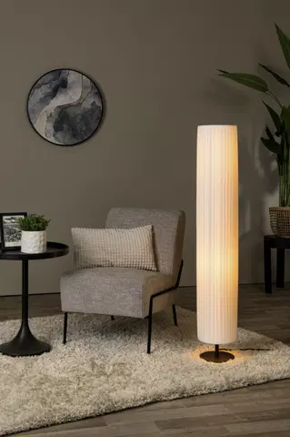 Fold gulvlampe fra Lucide er en moderne tolkning av klassisk design. Den sylindriske formen kombinert med den unike satengfinishen gir lampen et luksuriøst uttrykk. Lampeskjermen i stoff har elegante folder som gir et spennende designelement. Fold er dimbar, så du kan justere lysintensiteten etter behov. Bryteren på ledningen gjør det enkelt å slå lampen av og på.