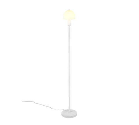 Glenn gulvlampe Hvit fra Trio Lighting er en elegant belysningsløsning som gir et rent og moderne uttrykk. Den helhvite designen gjør at lampen lett passer inn i forskjellige interiørstiler, enten du foretrekker minimalistisk eller klassisk stil. Den hvite glasskjermen sprer lyset jevnt og skaper en myk og behagelig atmosfære i rommet.