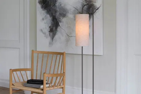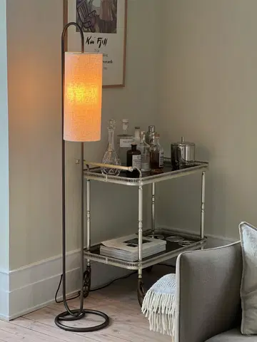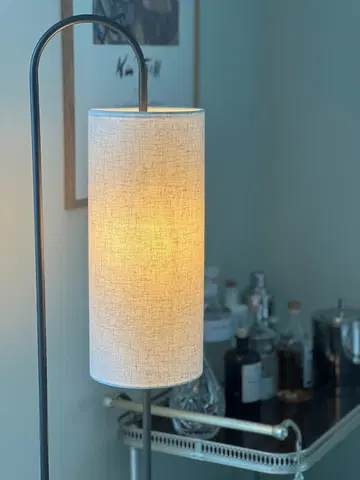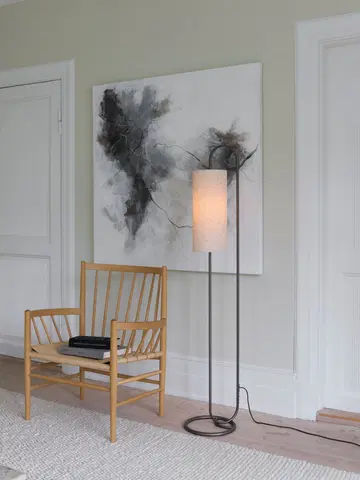 Loop gulvlampe er en elegant og moderne lampe som gir et varmt og innbydende lys i hjemmet. Med sin stilrene ramme i coffee brun metall og en sylinderformet skjerm i lys lin, passer lampen perfekt ved sofaen, i et hjørne av stuen eller som ekstra belysning på soverommet. Den myke lin-skjermen gir et behagelig og diffust lys som skaper en lun atmosfære i rommet.