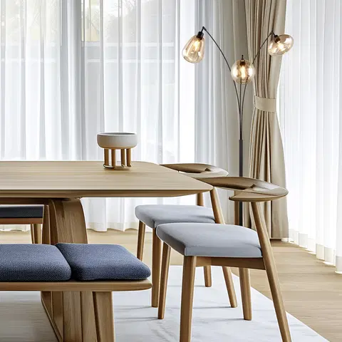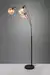 Lumina gulvlampen blir et spesielt blikkfang i stuen med sine tre elegante glasskupler i ulike former. Kombinasjonen av metall og glass skaper en vakker og unik lysatmosfære. Den matte sorte stammen og de gyllne glassskjermene gir rikelig rom for andre farger, noe som gjør det enkelt å integrere lampen i eksisterende interiørstiler.