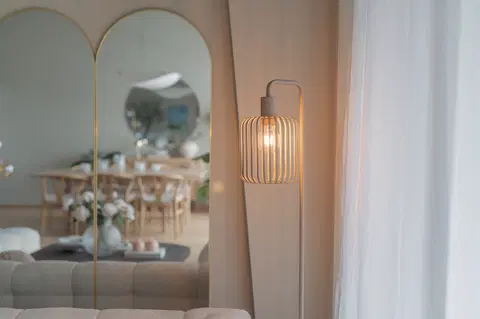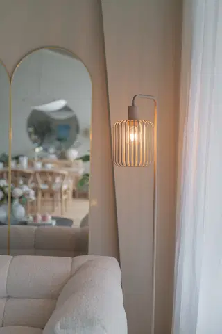 Maritza gulvlampe i beige metall er en tidløs og stilfull belysningsløsning som tilfører et elegant preg til ethvert rom. Lampen er designet med metallspiler som skaper et vakkert lysspill når lyset tennes, og gir rommet en varm og innbydende atmosfære. Den beige metallfargen gir lampen et subtilt, men sofistikert utseende som passer perfekt inn i stuen eller andre oppholdsrom.