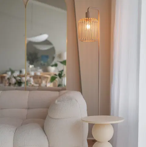 Denne gulvlampen er ideell som stemningsbelysning, og dens design gjør den til et attraktivt interiørelement, både når den er tent og slukket. Den gir et behagelig lys som skaper en rolig og avslappende stemning, perfekt for koselige kvelder eller når du ønsker å sette en varm atmosfære i rommet.