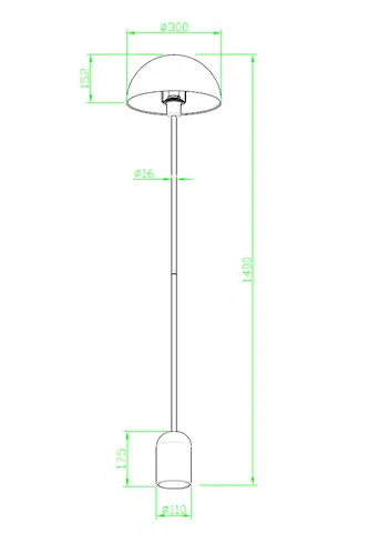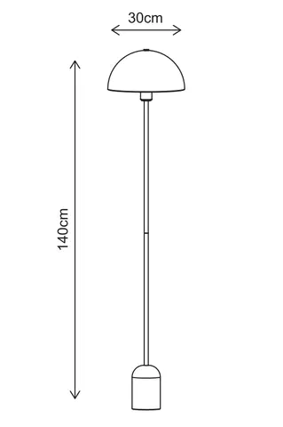 Denne gulvlampen har en høyde på 140 cm og en diameter på 30 cm. Den er utstyrt med en E27-sokkel som kan romme en lyskilde på opptil 40W. Ledningen er 2,5 meter lang og har en bryter for enkel betjening. Lampen er dimbar, men dimmer kjøpes separat.
