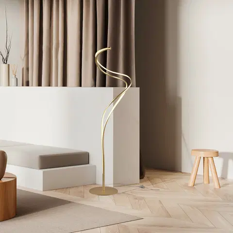 Nala er laget i metall med en elegant messingfinish som gir et luksuriøst uttrykk. Den er dobbelt isolert og har IP20-grad, noe som gjør den sikker å bruke. Med en ledning på 2,5 m og vekt på 7 kg står lampen stødig på gulvet. Trio Lighting leverer også 5 års garanti. Denne gulvlampen er energiklasse E og egner seg godt til belysning av stue, kjøkken eller arbeidsområder.