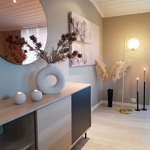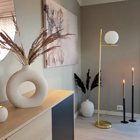 Pure gulvlampe fra Trio Lighting er en elegant og vakker lampe i messing og opalt glass. Med en høyde på 150 cm og en bredde på 25 cm, vil denne lampen gi et stilfullt designelement til ethvert rom. Den enkle, men likevel påkostede utformingen gjør at Pure passer inn i de fleste interiørstiler.
