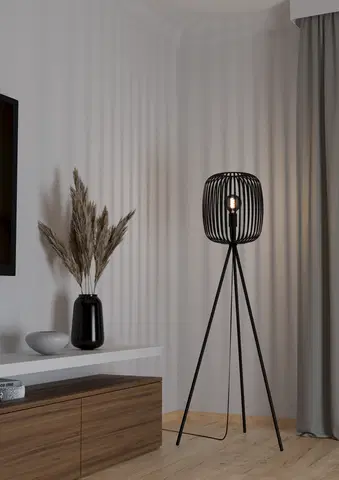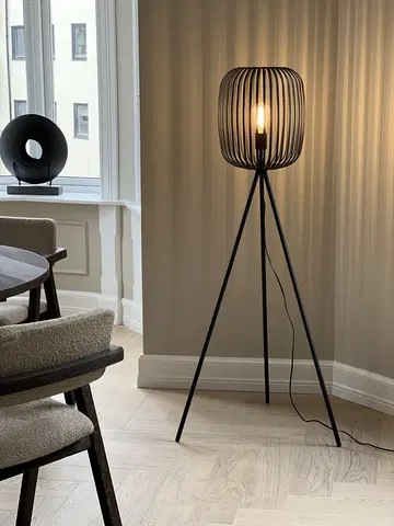 Romazzina gulvlampe fra EA / EGLO er en stilfull og trendy lampe med tre elegante bein. Den sorte fargen gir den et moderne uttrykk som vil passe inn i de fleste interiører. Lysbildet kan enkelt endres ved å bytte mellom en klar eller matt lyskilde, noe som gir deg muligheten til å skape ulike stemninger.