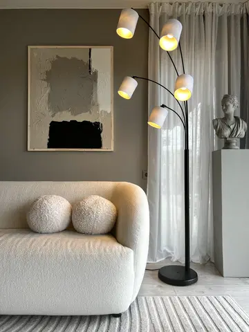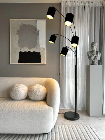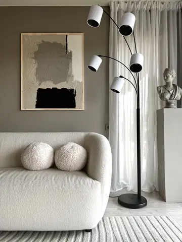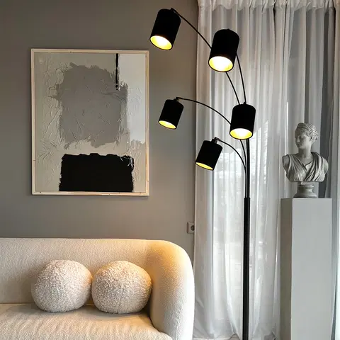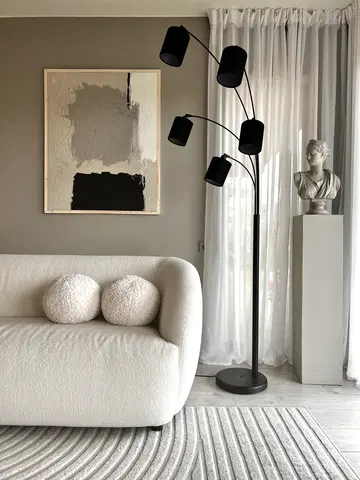 Zeba er en imponerende gulvlampe fra Nova Life som kombinerer stilrent design med praktisk funksjonalitet. Med sin matte, sorte overflate og fem armer, skaper denne lampen et moderne uttrykk som passer perfekt inn i ethvert hjem. Høyden på 207 cm gir et flott lysskjær, mens den kompakte bredden på 32 cm gjør at den kan plasseres i de fleste rom uten å ta for mye plass. Skjermer til lampen kjøpes separat, slik at valgmulighetene er store!