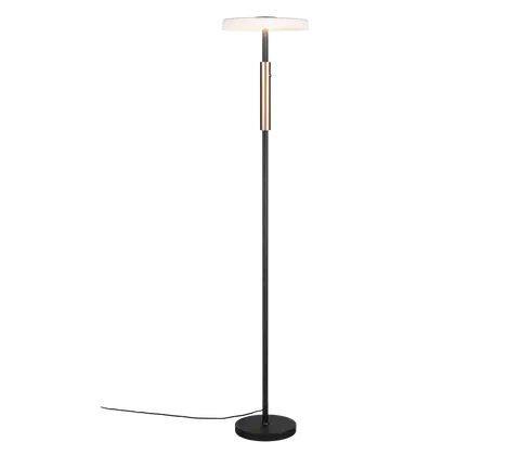 Celeste gulvlampen fra Trio Lighting kombinerer elegant design med imponerende funksjonalitet. Dens unike metall- og glassutforming skaper spennende aksenter i ethvert rom. Den matte, futuristiske glassskjermen skaper fantastiske lysspill og en varm, innbydende atmosfære. Enten ved sofaen eller i gangen, gir Celeste perfekt belysning. Takket være den integrerte sensordimmeren kan du justere lysstyrken sømløst for å passe dine behov. Den stilige kombinasjonen av kaffebrun metall og matt svart og hvitt glass smelter sømløst inn i både moderne og klassiske interiører. Lampen har energieffektiv LED-teknologi som gir høy lyskvalitet og sparer opptil 80% av energikostnadene sammenlignet med halogenlyskilder. LED-lyskilder har også lang levetid, produserer mindre varme og er miljøvennlige.