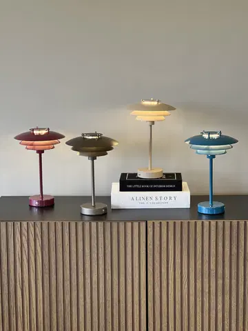 Joakim bordlampe i beige kombinerer minimalistisk design med praktisk oppladbar funksjon. Den gir deg friheten til å plassere lampen hvor du ønsker, helt uten ledninger, og lades enkelt med medfølgende USB-C-kabel (adapter kjøpes separat).