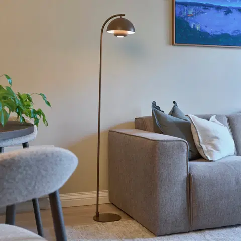 Den elegante buen og den stilrene skjermen gir lampen et tidløst uttrykk som passer perfekt i stue, lesehjørne eller soverom. Den varme brune finishen tilfører en lun og sofistikert stil til interiøret. Med en høyde på 145 cm gir Myla et behagelig lys som skaper en koselig atmosfære, samtidig som den er enkel å flytte og plassere der du trenger den.