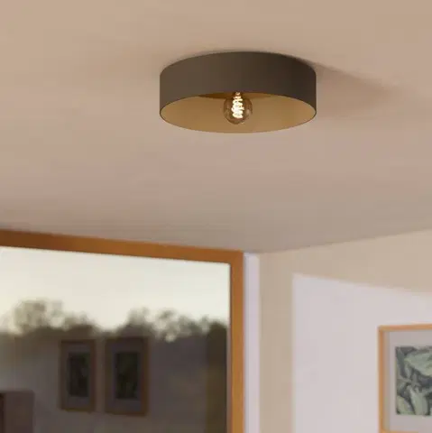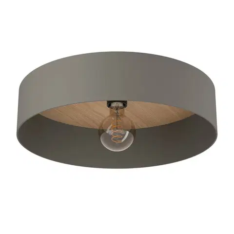 Duaia takplafond har en stilren design med brun metallskjerm og treverk. Den bygger lavt under taket og gir godt med lys, noe som gjør den perfekt for soverommet eller entreen. Plafonden har en diameter på 42 cm og en høyde på 16 cm. Den er dimbar med dimbare pærer og har en sokkel som tar E27-lyskilder på opptil 40W. Selve plafonden leveres uten lyskilde.