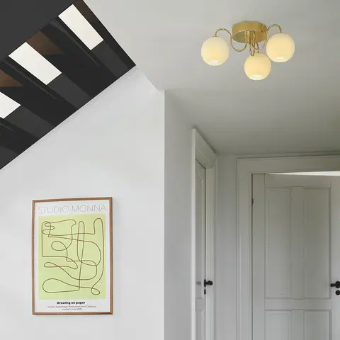 Franca-serien fra Nordlux byr på et eksklusivt og elegant design med vakkert blankt glass og skinnende messing. Denne takplafongen henter inspirasjon fra den klassiske lysekronen, men med en moderne vri. De hvite glasskuplene skaper et mykt og diffust lys som gir en behagelig atmosfære.