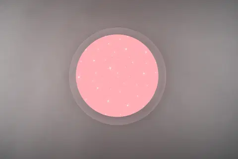 Denne taklampen er IP44-klassifisert, noe som betyr at den er sprutsikker og egner seg godt for montering i våtrom som bad og vaskerom. Lampen har trinnløs dimming som styres med en medfølgende fjernkontroll, slik at du kan justere lysstyrken etter behov. Den kan festes via en bakplate og er ment for skjult anlegg.