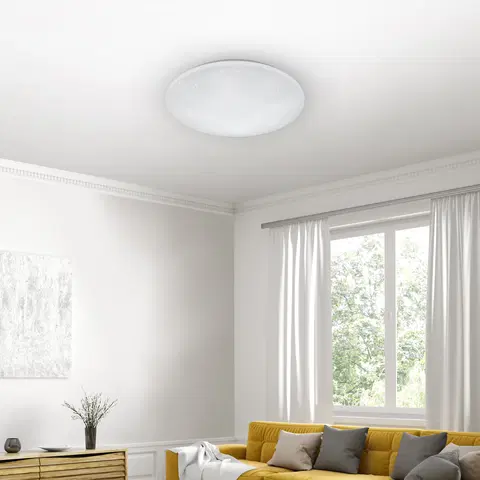 Lampens hvite akrylskjerm har en vakker stjerneskinnseffekt som sprer et mykt og dekorativt lys i rommet. Akrylmaterialet gir en jevn lysfordeling og gjør lampen enkel å rengjøre. Med en diameter på 60 cm og innfelt LED-belysning på 27W, gir Kato et godt arbeidslys til stue eller kjøkken.