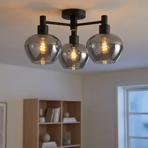 Med sin mattsorte base og røykfargede glass er Kelly plafond taklampen fra Nova Life en stilsikker vinner. Denne lampen i Kelly-serien fanger virkelig oppmerksomheten og løfter ethvert rom med sin moderne design.
