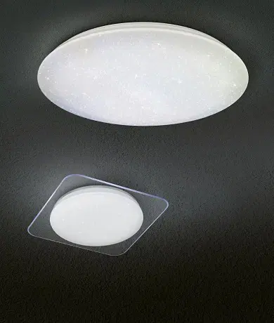 Lampen har en akrylskjerm som skaper en stilfull stjernelys-effekt. Den hvite fargen gir et rent og moderne uttrykk som passer inn i de fleste interiører. Med sin kompakte høyde på kun 10,8 cm får du en slank og luftig konstruksjon som ikke oppleves overveldende i rommet.