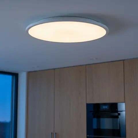 Plafonden er laget av akryl og har en hvit finish som gir et rent og moderne uttrykk. Den flate designen med kun 2,85 cm byggehøyde gjør at den ikke tar for mye oppmerksomhet fra resten av interiøret. Taklampen kan dimmes ved hjelp av en ekstern dimmer, slik at du kan tilpasse lysstyrken etter behov.