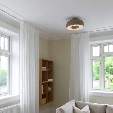 Lampens utside i dus beige gir et lunt og moderne uttrykk, mens den hvite innsiden sørger for optimal lysrefleksjon og et jevnt, behagelig lys. Den stilrene formen gjør Venus til et naturlig valg for entré, gang eller andre rom der du ønsker et rent og harmonisk uttrykk.
