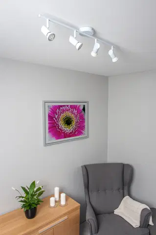 Taklampen har fire lyskilder med GU10-sokler, som gir et godt og jevnt lys. Lysintensiteten kan reguleres med en dimmer, noe som lar deg skape stemningen du ønsker, fra konsentrert arbeidsbelysning til en mer avslappet atmosfære. Hodene er konstruert i metall og kan enkelt justeres slik at lyset treffer akkurat der du trenger det.