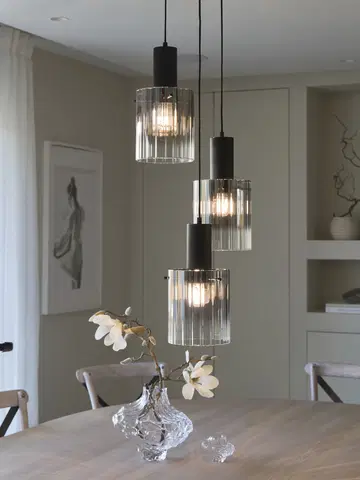 Denne taklampen passer perfekt for deg som ønsker en moderne og stilren belysningsløsning i stuen eller på kjøkkenet. Kombinasjonen av rillet røykfarget glass og klart glass skaper en unik og stemningsfull lyseffekt. Med en effekt på 40W og tre lyskilder, gir Aura et godt og behagelig lys.