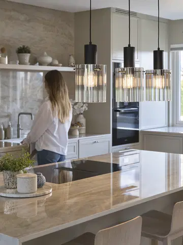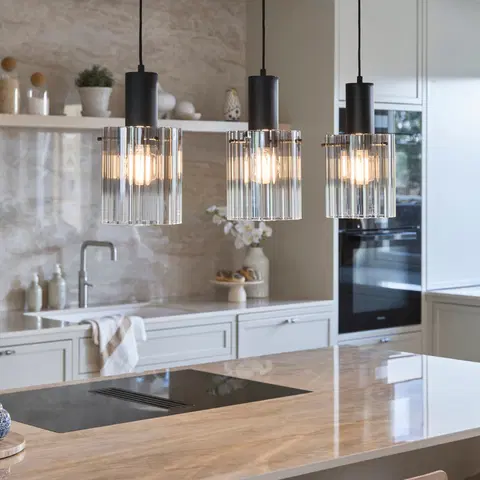 Aura taklampe fra Nova Life er et moderne designstykke som vil gi rommet et stilrent og eksklusivt preg. Lampen har en skinne med tre røykfargede glasskuler som gradvis går over i klart glass. Dette gir en utrolig flott lyseffekt når de tre lyskildene er tent. Glasset har en rillet overflate som kaster et mykt og behagelig lys.