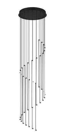 Baxter er en taklampe som kombinerer høy ytelse med stilrent design. Med sin svarte finish og en diameter på 37 cm, passer den perfekt inn i moderne interiør. Lampen består av flere hengende lysstaver i ulike lengder, festet til en rund base, noe som gir et dynamisk og elegant uttrykk.