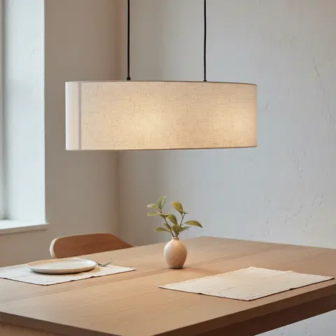 Blefjell taklampe har en elegant oval form og en tekstilskjerm i lin som gir et naturlig og sofistikert uttrykk. Med en lengde på 80 cm passer den perfekt over spisebordet, hvor den gir jevn og behagelig belysning som skaper en innbydende atmosfære. Lampens enkle, men stilfulle design gjør den også ideell for hytta, der den kan tilføre en varm og lun følelse. Den tidløse tekstilskjermen gir et mykt lys som gjør lampen til et ideelt valg for både moderne og klassiske interiørstiler.