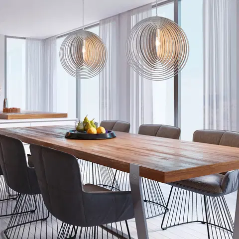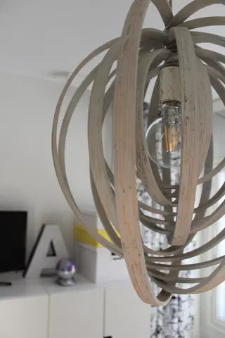 Boolan er dimbar og kan justeres i høyden, slik at du får belysningen akkurat som du vil ha den. Bruk av dekorpære anbefales for å oppnå en flott lyseffekt fra denne lampen i naturlige materialer. Lampeskjermen i gråmalt treverk gir et vakkert, naturlig uttrykk som passer inn i mange interiører.