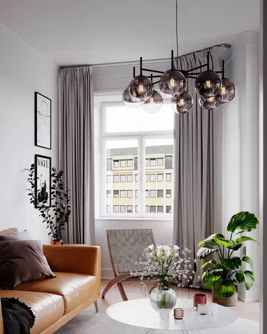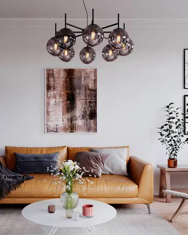 Denne taklampen er svært allsidig, med mulighet for å justere lengden på opphengskjeden og dimme lysstyrken ved hjelp av en ekstern dimmer. Selv om lampen ikke leveres med lyskilder, har den åtte E27-sokler som lar deg velge dine foretrukne lyspærer. Uansett om du foretrekker varmt eller kjølig lys, kan du skape akkurat den stemningen du ønsker.
